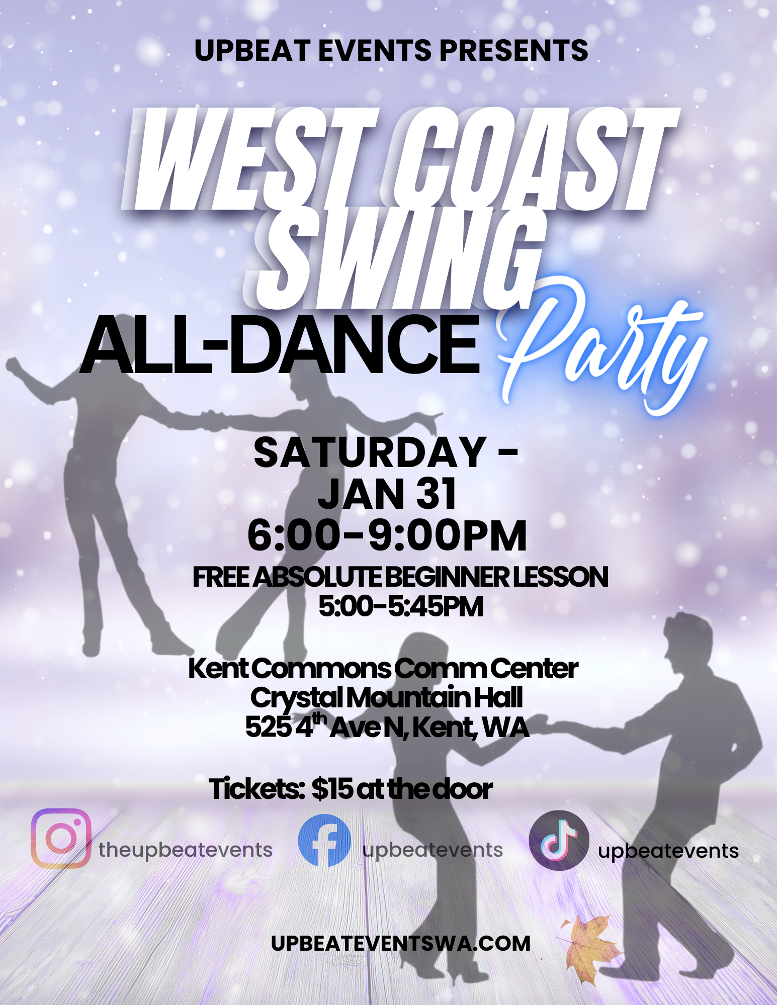 Step into the rhythm with Upbeat Events, where every dance is an experience and every dancer belongs. Whether you’re just starting your dance journey or refining your skills, we offer a welcoming space to connect, express, and have fun. From the smooth, improvisational style of West Coast Swing to the passionate, rhythmic flow of Bachata, our events are designed to inspire and energize. Join us on the dance floor and discover why it’s more than just movement—it’s a vibe.